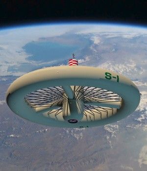 During the 1950s Werner von Braun and space exploration enthusiast Willey Ley described orbital space station concepts in Colliers and other magazines. The station that von Braun presented in a TV program was released in 1958 as a plastic model kit by Strombecker and later by Glencoe. Although the stations described differed in detail both were conceived as nuclear powered wheels that spun to create artificial gravity. As represented here, spinning at about 6 rpm the main level in the rim would experience about six tenths earth's gravity. The cylindrical core of the station, which includes an airlock and docking port, has an essentially zero-gee environment. Gravity gradually increases as one moves along the three wide spokes toward the rim. Crew members can climb down the spokes to the rim on ratlines similar to those used on sailing ships. Each spoke has a cog elevator for moving equipment or for more comfortable transfer. The narrow, black, bicycle-spoke-like tubes are not structural, but a radiator for cooling the nuclear power plant.