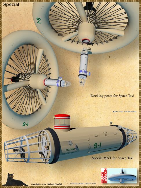 o Docking and docked poses for the Space Taxi (separately available in the Marketplace)