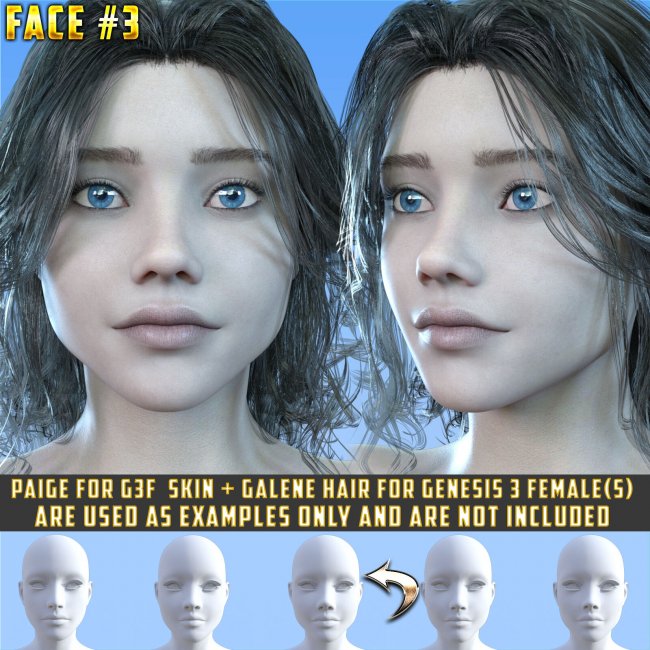 "Loki's Ladies Faces Volume #1" is a collection of 5 custom face shapes for Genesis 3 Females.