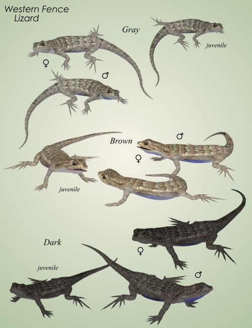 - Western Fence Lizard (male, female & juvenile in 3 color variations)