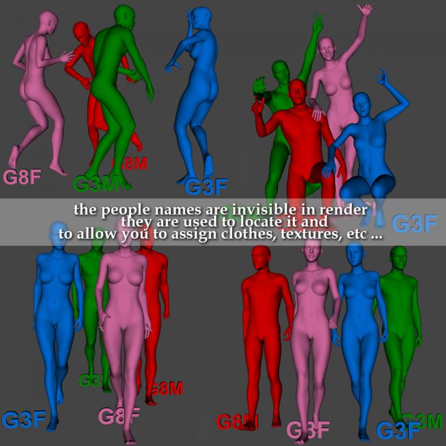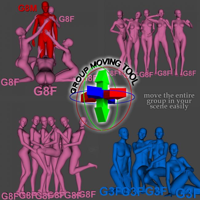 - 10 Wearables group poses: Close group (6xG8F) / Dance group (1xG3F 1xG3M 1xG8F 1xG8M) / Explanation group (1xG3F 1xG3M 1xG8F 1xG8M) /