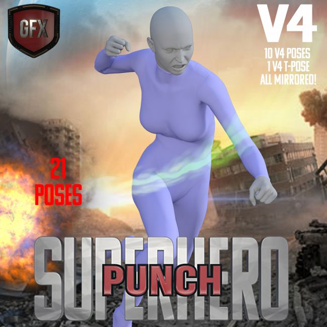 SuperHero Punch is a set of punching poses for V4. Daz Studio Only.
