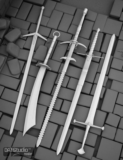 Included are 5 such examples: Claymore, Dadao, Flamberge, Greatsword and Highlander. Each comes with both clean and bloody mat 3D presets for Poser and DAZ Studio as well as 10 poses for Genesis/p>