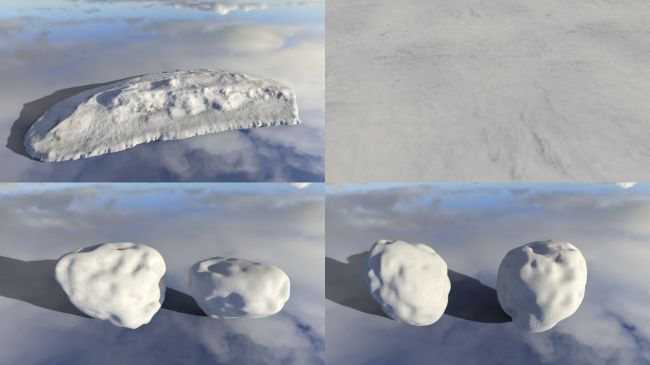 Enjoy a detailed set of snowy hills with big 8K textures that could be used as hills or even mountains for your snow landscapes. They all come with down morphs so you can push them into the ground if you wish. A landscape base with tiling snow texture is also included.