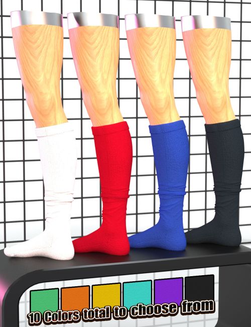 Lots O' Socks comes with four unique styles: Ankle, Crew, Calf, and Knee High. Thanks to Daz's Auto Follow functionality, these socks will seamlessly fit any figure, including custom morphs.