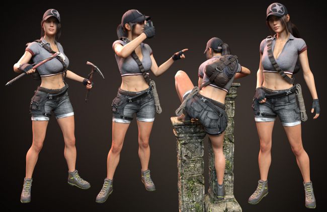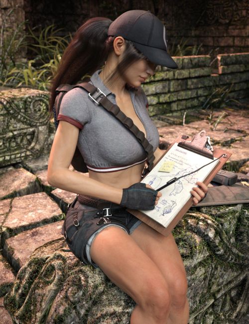 Adventure Poses and Props for Genesis 8 Female includes several adventurer's props and a good variety of poses