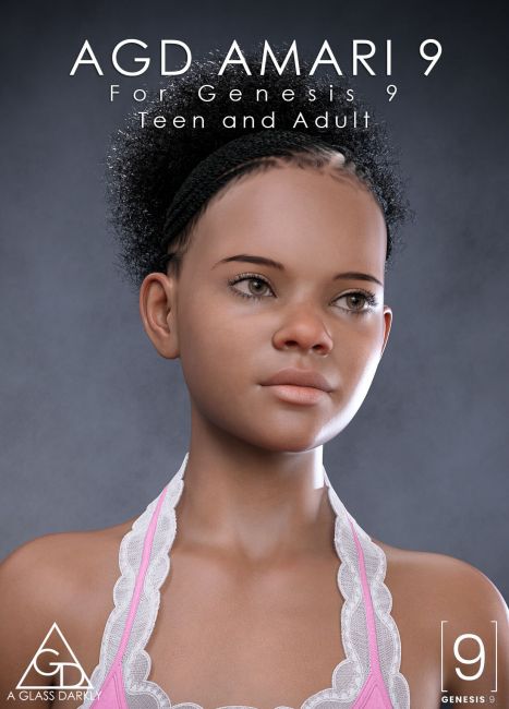 Introducing AGD Amari, a uniquely versatile character for Genesis 9. Amari comes in two age settings, one as a teen and the other as an adult. Amari was converted from my Genesis 8 model of the same name. She has been resized to Genesis 9 proportions.