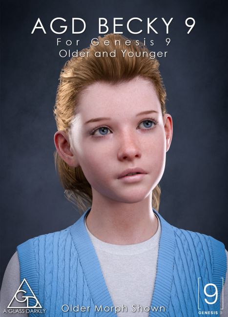 Introducing Becky 9, a versatile character for G9. Becky is a younger teen character that comes in two ages, separated by only a few years. She comes in two distinct yet similar head and body sculpt that allow you to use her as two sister characters as well. Becky was converted from my G8 model of the same name.