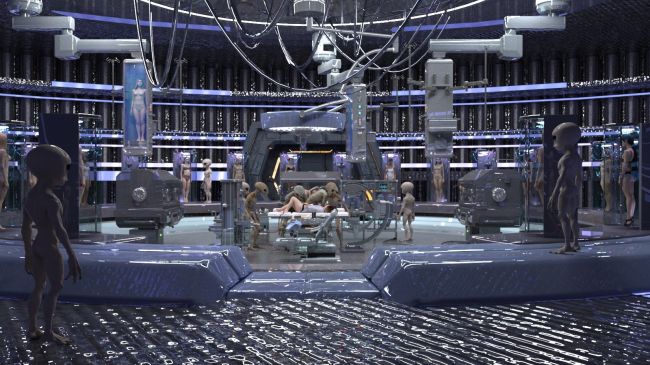 If you are unfortunate to be kidnapped by extraterrestrial beings for forced physical or psychological examination, this scene depicts what you can expect. I have included 3 different types of aliens, Examination Bay, Bio tube, Blood_Extraction_Unit, cables, a static doorway, Examination_Light, Examination_Seat, Examination_Table, 4 Standing Females, Head_Scanning_Unit, Incubate_Stasis_Tube, Instrument_Stand, swivel, 2 females lying down and a UAP (UFO) for external views.