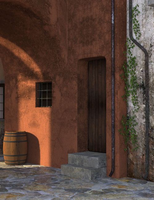 Alleyways Village is a quiet back street in an Italian Village. With run down buildings and cobbled streets, earthy colours and warm sunshine tones bouncing off buildings.