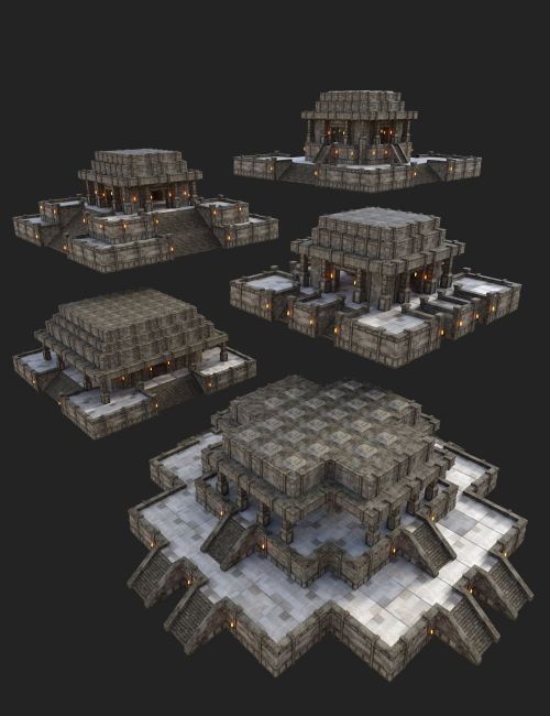 Ancient Temples 2 is a collection of 5 more imposing stone structures that will add a sense of scale and majesty to any ancient settlement scene.