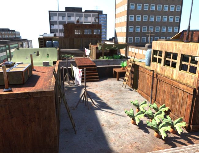 Build your own Rooftop Refuge using three modular buildings that can be placed anywhere, a blank rooftop base, and a set of background city buildings to give your scene a realistic, lived-in look.