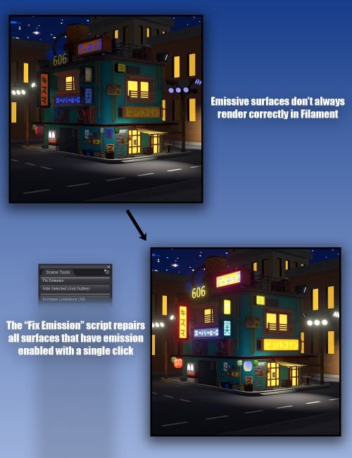 - Fix Emission - Emissive surfaces don't always emit properly when loaded. Run this script to fix the entire scene with a single click