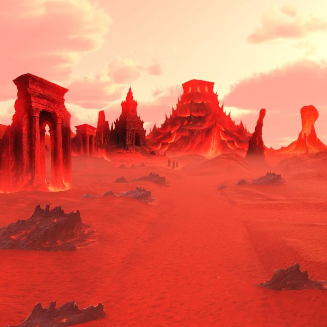 Build your backgrounds to your liking with the architectural billboards in the hell theme. Load the provided terrain into your scene, arrange the billboards of your choice, adjust the scale and finally apply the provided Iray preset. We recommend working in Iray preview mode in order to be more precise in the placement of the elements. If you use the provided example preloads (3), select the camera view in your work window. By default, fog is present in the render preset, you can adjust or remove it from the render settings.