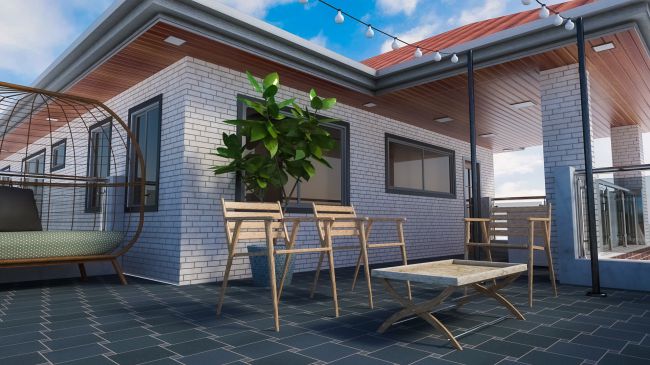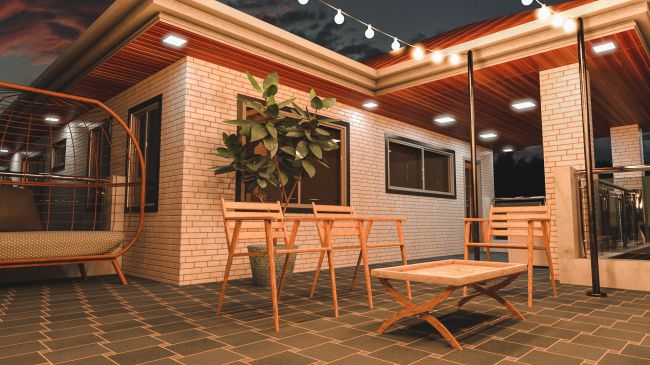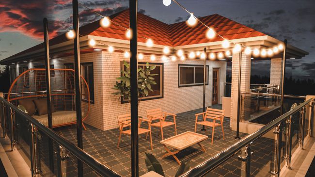 Unusually wide and spacious, the Avil Balcony can accommodate big seats and even beautiful globe string lights. It's made with a backyard in mind and maybe an unusual take of a balcony but it will always be homey, comfortable and the place your characters want to be.