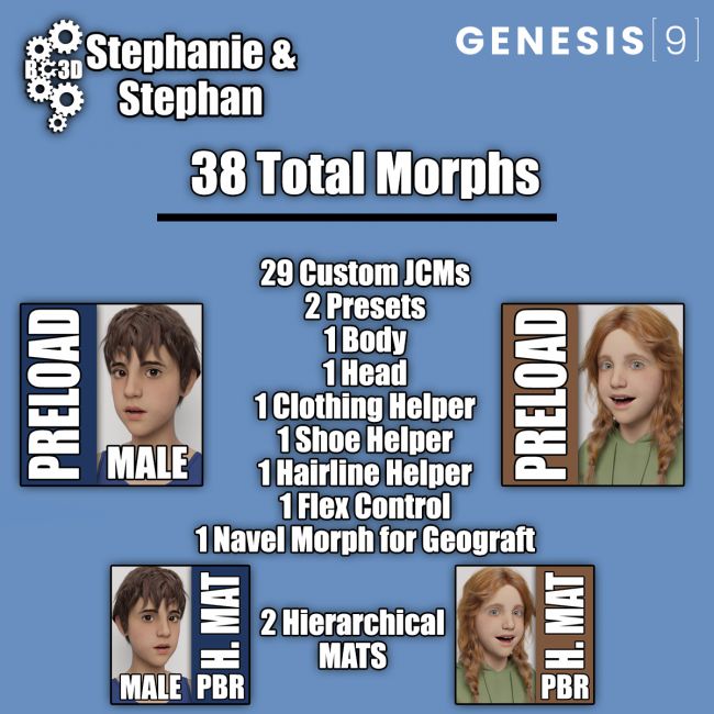 NOTE: At this time, BG3D Stephanie & Stephan for G9 (Navel Edition) will be EXCLUSIVE ONLY to the Genesis 9 Figure due to my NEW EXCLUSIVE G9 Bonus Navel Geograft.