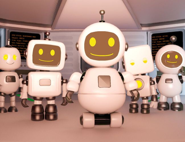 Meet the Bit-E Bots! This is a cheerful crew of retro-inspired robots designed to bring instant personality to your scenes.