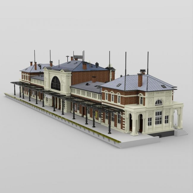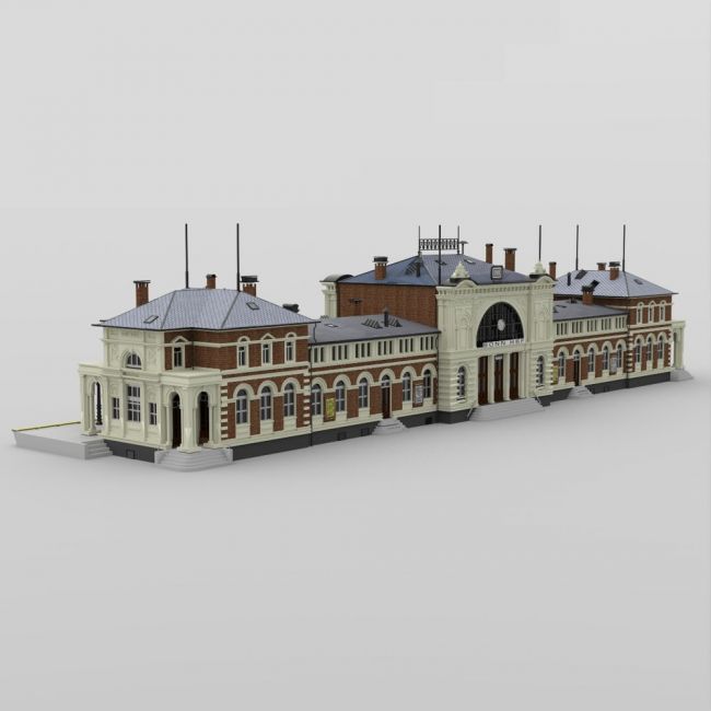 A railroad station whose design is based on the historic station in the city of Bonn.