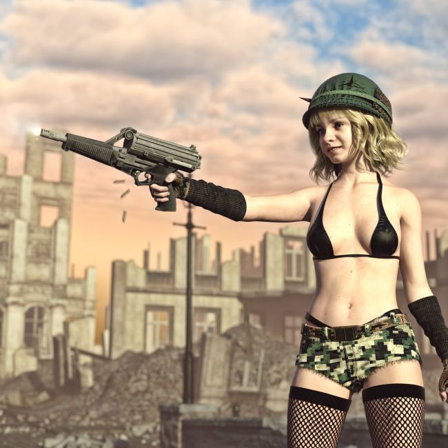 A super cool looking and probably never used anywhere submachine gun, developed and produced by one of the rare companies that still tries to innovate stuff in guns. Has a very high capacity mag, of 50 or 100 bullets of 9mm rounds. The prop is rigged and converted for use with DAZ. Trigger, safety, mag etc also rigged for more realistic pictures. A usual, has a silencer just for added coolness. If you're making some futuristic pictures or an alternative reality novel- this gun will be a great addition.