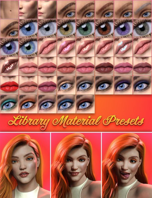 Canilyra HD for Genesis 8.1 Female is a custom-sculpted morph designed for subdivision 4 detail. She is for Genesis 8.1 only, using the PBR Skin shader and UV Maps. She comes with fibermesh brows, 9 eye colors, 9 makeup options, and several options to mix-and-match effects, such as metallic and glossy lipsticks, with or without blush, and 2 different skin shine options.