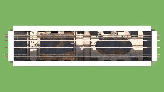 The arched tunnels and broken ceiling reveal glimpses of the sky, adding an eerie sense of abandonment and depth.