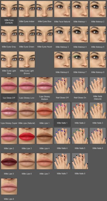 - 8 Iray Makeup Sets (Separate Sets for Brows/No Brows)