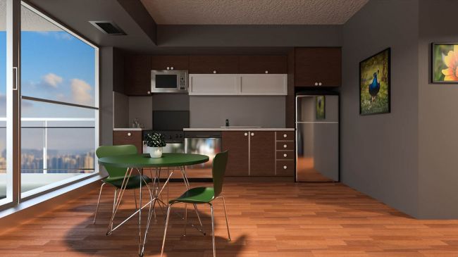 Complete condominium unit: living room, kitchen, bedroom
