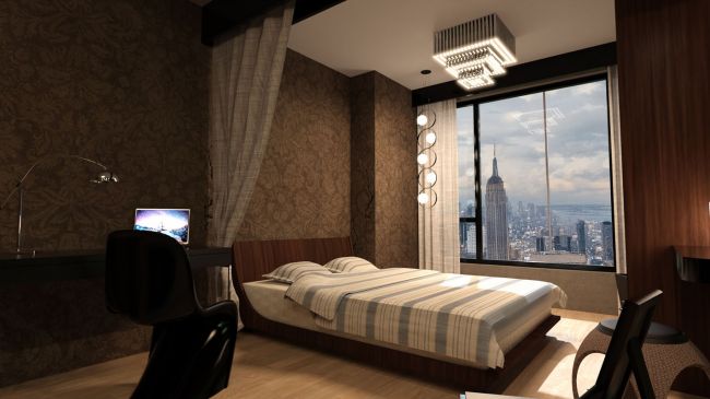 Elegant Bedroom is a refined 3D interior scene showcasing a warm, modern bedroom with rich wooden textures, soft lighting, and a cozy ambiance. Perfect for realistic architectural renders and interior design presentations.