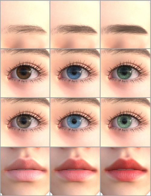 CNB Gao Lang for Genesis 9 is a 15-year-old East Asian girl with delicate features and a petite frame. Her sweet facial expression and quiet demeanor embody the charming blend of childlike innocence and youthful grace characteristic of East Asian adolescents. Classic eye and lip color presets are provided, complemented by three eyebrow options.