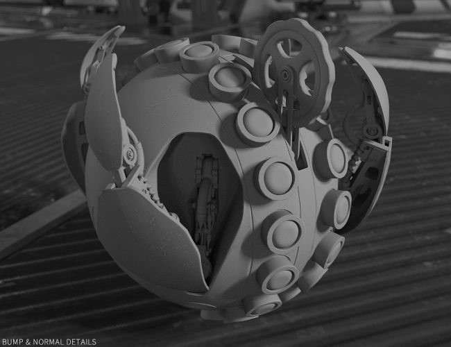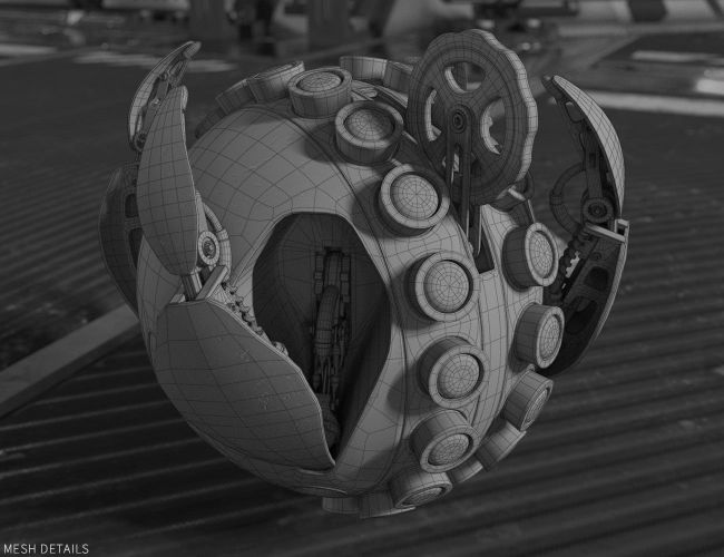 The COG Regime Roller Drone features a fully enclosed spherical chassis engineered for durability and mobility. Its rugged outer shell protects advanced internal systems while allowing smooth 360° rolling movement across varied surfaces, including metal decking, concrete, and industrial terrain.