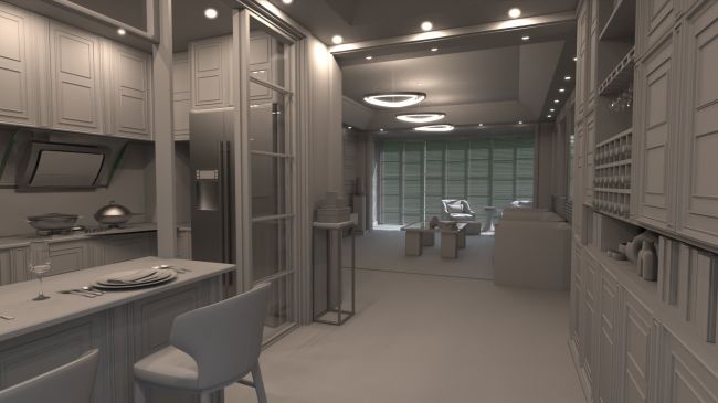 This versatile 3D environment offers a modern and luxurious setting perfect for cozy home scenes, professional interiors, or architectural presentations.