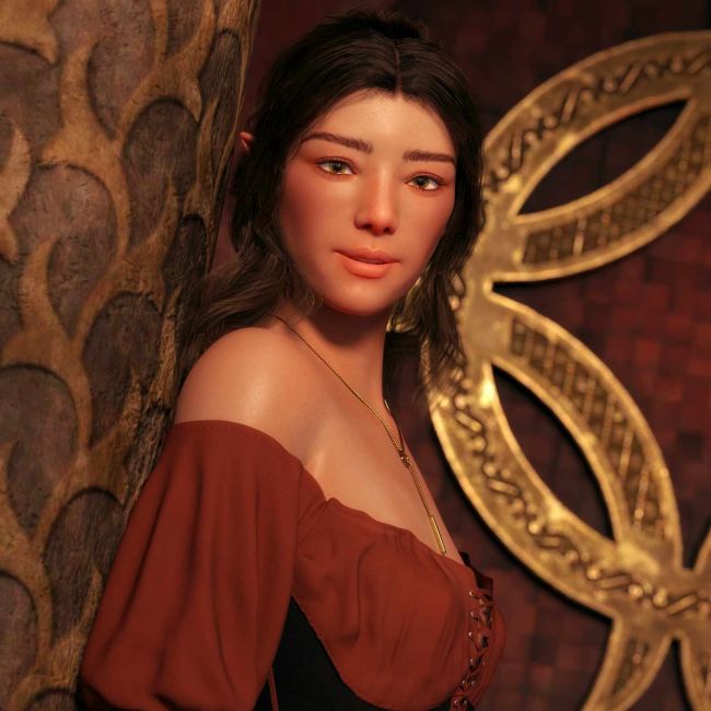 In the service of the high elves, she appears as a simple maid: plainly dressed, reserved, and unobtrusive.