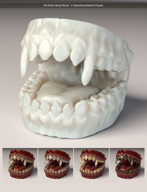 DA Rotten is a high-definition sculpted morph. Juicy, realistic textures bring it to life. Add a blood Geoshell for a bit of extra gore.