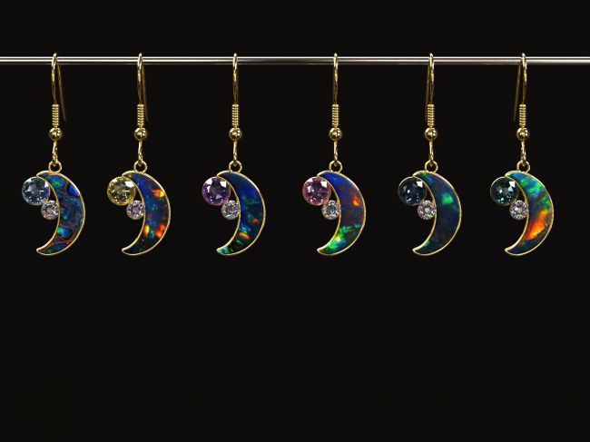 Luna Opal Moon Earrings (fully rigged, left and right earring)