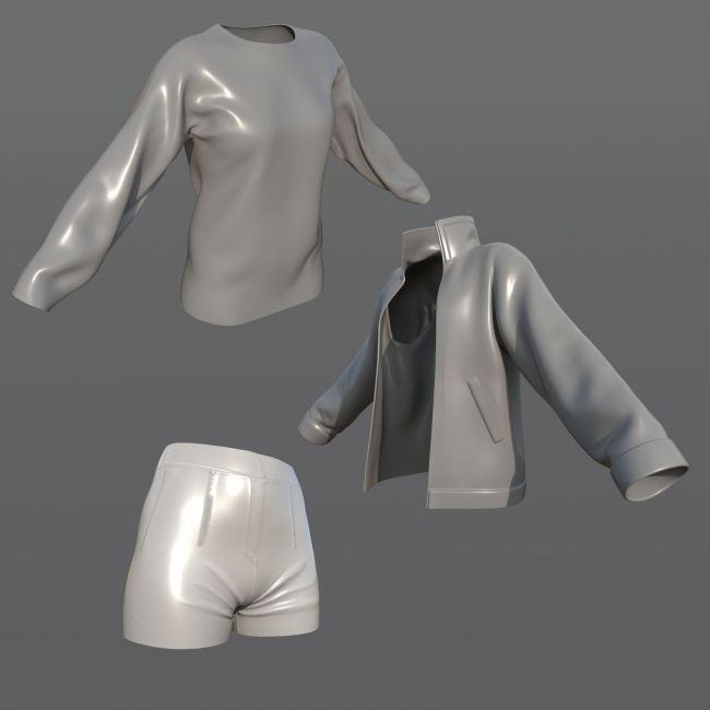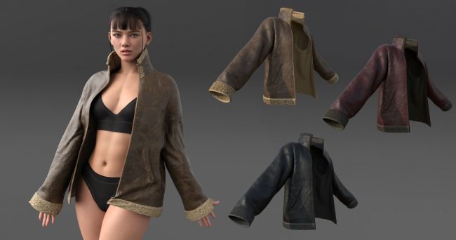 The dForce City Attire Outfit is a wool Sweater, a Coat leather and fur, and satin cotton Short for the Genesis 9 Female figure for use in DAZ Studio using iRay and dForce.