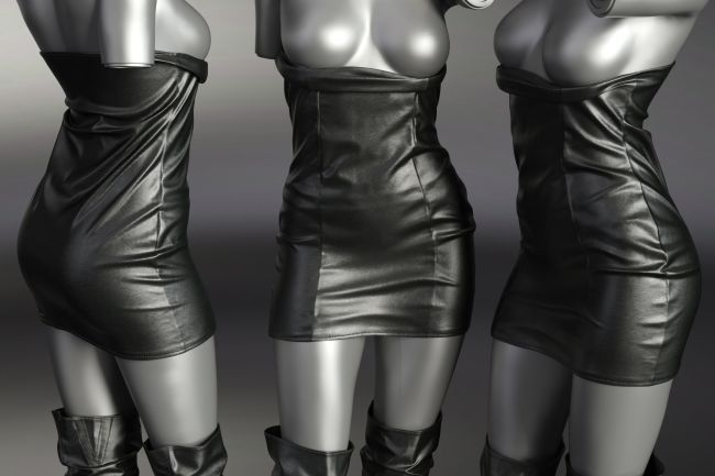 dForce Classic Leather Tube Dress Outfit for Genesis 9, 8 and 8.1 Female is a realistically modeled outfit with Show Breasts and Skirt Roll Up Morphs and has 2 Classic Leather Tube Dress Material Presets and 3 Classic Leather High Boots Material Presets.