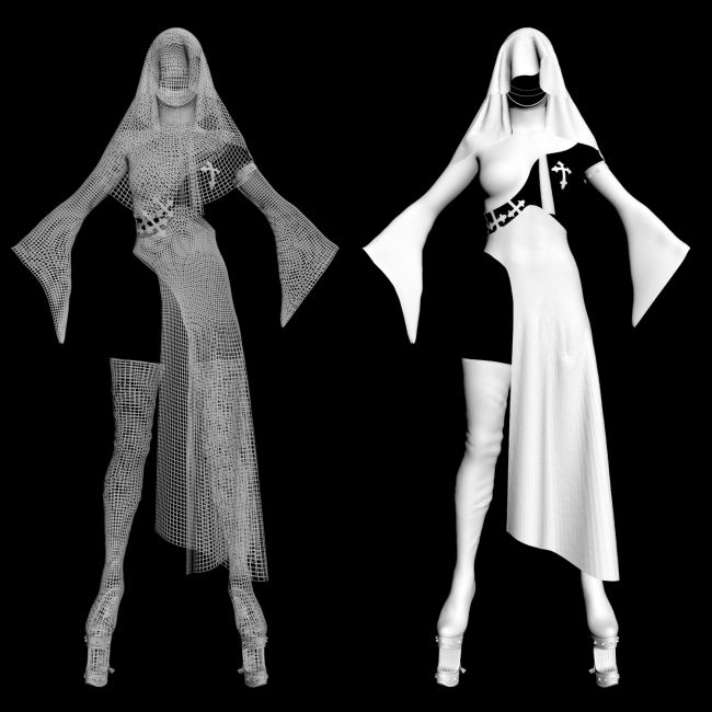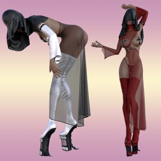 Dforce Dark Nun Suit is a full body 5 pieces suit, fits G8 Female characters of all sizes
