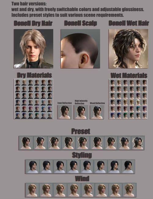 The dForce Donell Hair is a realistic mid-length hairstyle featuring: