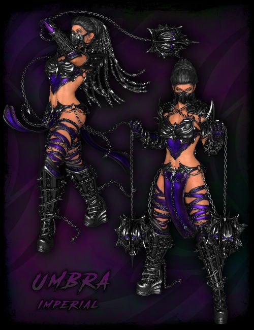 Also included are tons of materials in 6 colors. As usual, there are three modes: Revenant mode, which is a tattered and scratched battle worn look. Next is Sentinel, which is purely iron clad and chainmail with patina plates. Finally, there is Imperial, which is fancier iridescent leather with shiny metallics and flourishes. Of note, the Revenant mode utilizes grayscale maps, so you can change the iray surface colors to any color you can dream of! Black is particularly lovely this time of year.