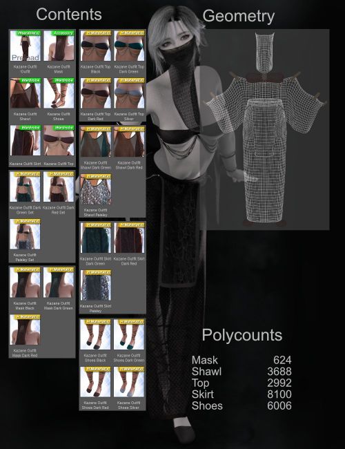 - dForce Kazane Outfit for Genesis 9: (.DUF)