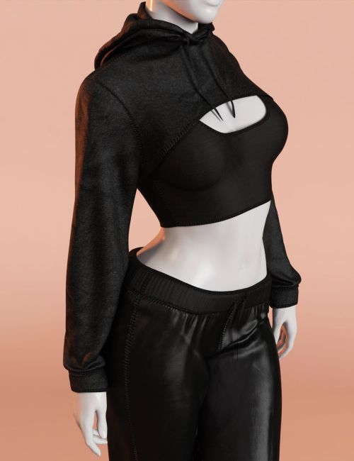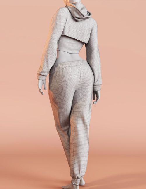 The set includes a cropped hoodie, fitted top, and sporty pants, enhanced by 3 texture packs that add subtle variety while preserving a clean, realistic fabric look.
