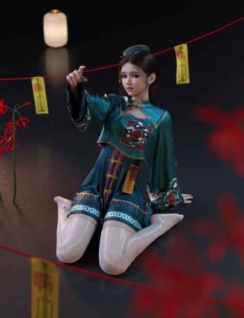 The theme of "MKTG Cute Zombie Outfit" is taken from the Chinese zombies in the Qing Dynasty. It is a combination of the youthful and cute JK school uniform skirt and the cold and terrifying Qing Dynasty official costume.