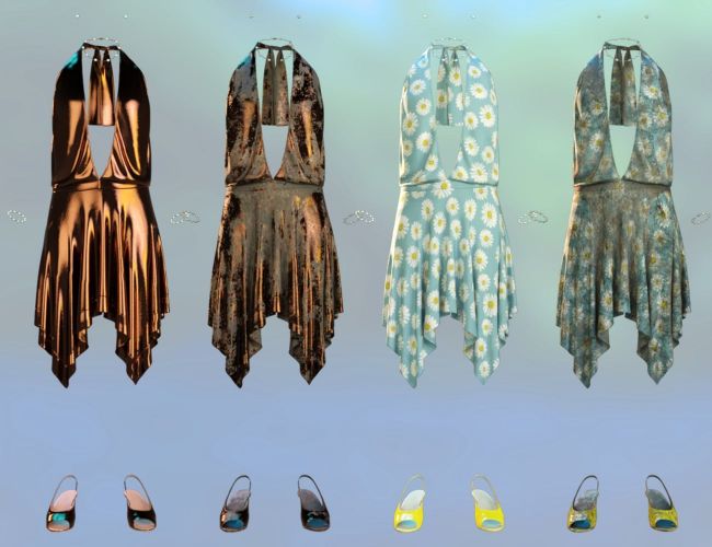 The outfit also features special morphs that allow pieces to be shaped as though they are off the figure, intended for use when the items are not fitted to a character.