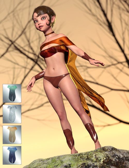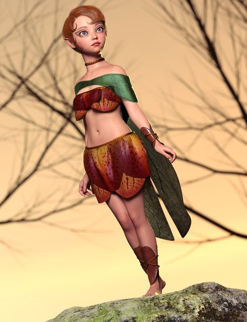 A fun fantasy fae orchid-inspired outfit complete with skirt, top, panties, wings, cape, and arm and leg cuffs. Four texture options and a plethora of wing options to mix and match.