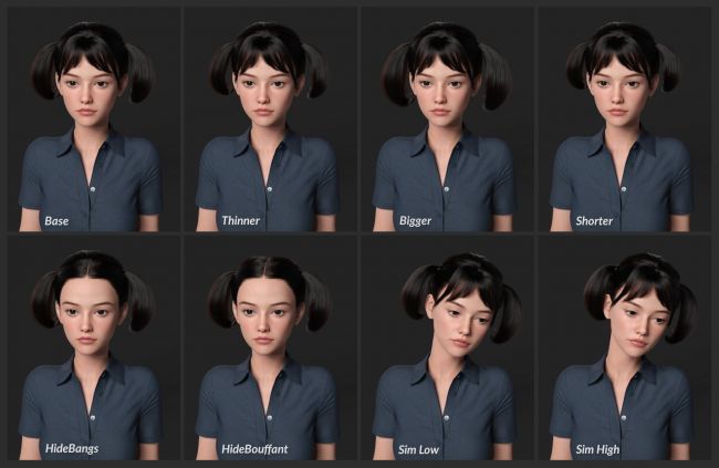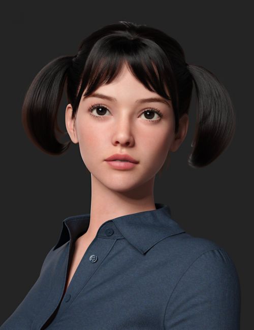 This hair has poseable pigtails with optional dForce simulation for the pigtails and bangs.