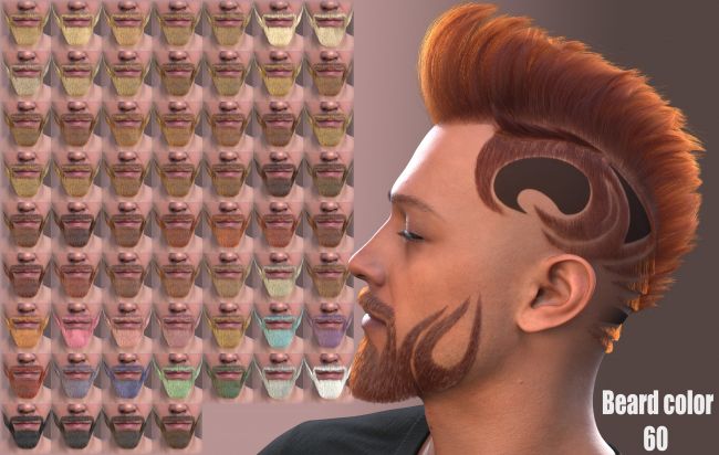 It includes 60 hair colors, 60 beard colors,3 styles,2 blowout styles and 17 adjustment morphs.