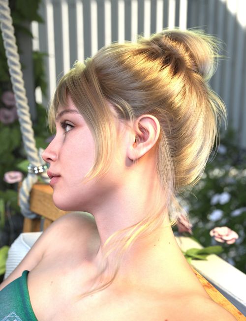 dForce Strand-Based FE Layered Updo Hair for Genesis 9,8 and 8.1 is a sophisticated, multi-dimensional updo with delicate twists, braids, and loose strands for added realism.