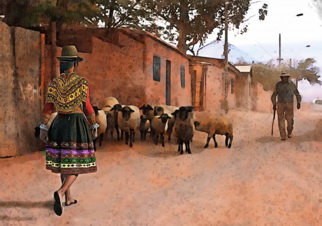 A traditional Peruvian outfit for women typically includes a colourful, embroidered skirt known as a Pollera, which is often voluminous and decorated with intricate patterns that reflect regional styles and cultural heritage. The clothing often features vibrant patterns on both the top and skirt, showcasing the rich textile traditions of the Andes. The outfits are often handmade, using techniques passed down through generations, and are worn during festivals, celebrations, and daily life in rural areas.