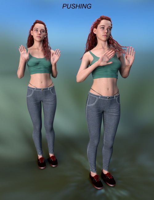 In addition to these iconic gestures, we offer 5 metaphorical animations: breaking, floating, opening, pulling and pushing. These movements aren't just actions; they're powerful tools that can symbolize deeper meanings and enhance narrative flow. Whether your character is breaking free from constraints, floating in a moment of reflection, or overcoming challenges, these animations add depth and nuance to your story.
