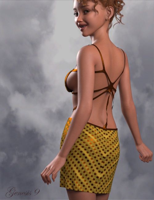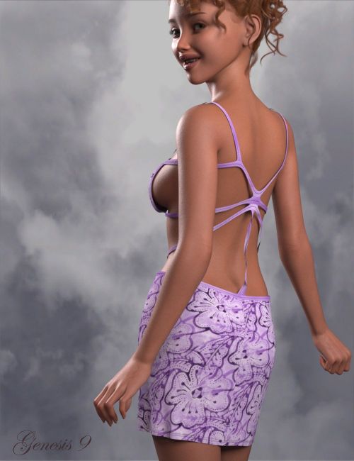 Donnena introduces Sage for both Genesis 9 and Genesis 8 and 8.1 Females. Sage is a daring summer dress, showing a lot of skin. Ten delightful textures round out the package. The Any Color option will allow Sage to fit into any scene. Sage is all about Fun in the Sun. Please be sure to look for the Edge add-on for additional options!